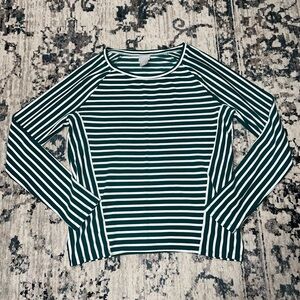 Tag says S/M but it runs big in my opinion. I wear a large and it fits me great! This is great for wearing with leggings or jeans or throwing over something. Perfect for layering and adding a little extra warmth.