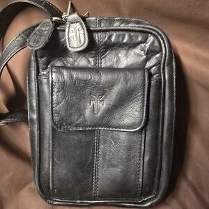 🛑 1 hour sale. Frye, Black Leather Crossbody Bag w/ Buckle Details, lovely