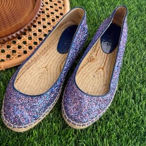 ๐ฅ๐Jimmy Choo, worn 1x, for one hour. Absolutely stunning purple blue sparkle espadrilles.
