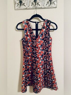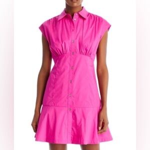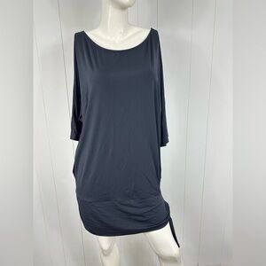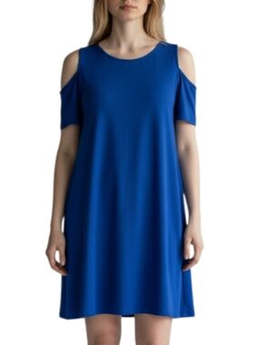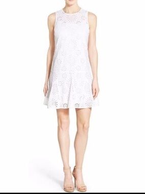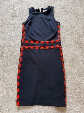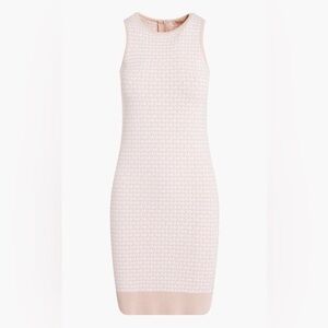 Sleek sleeveless mini with fitted silhouette. Side logo trim adds designer flair. Scoop neckline for a classic look. Stretch fabric for comfortable movement.