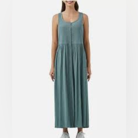 Chic teal maxi dress by Frye. Sleeveless design with a flowing silhouette. Perfect for casual elegance.