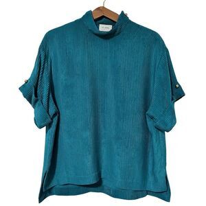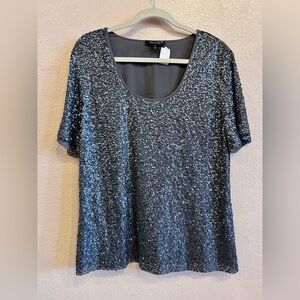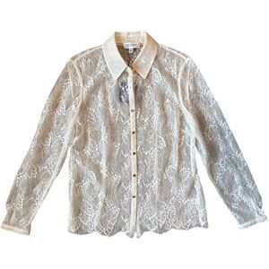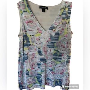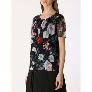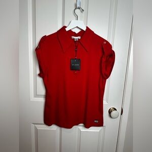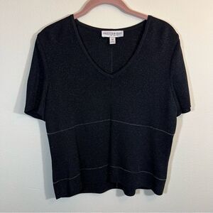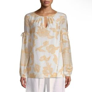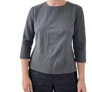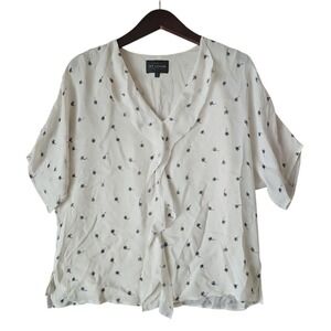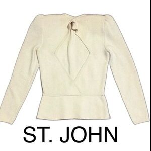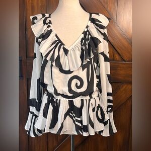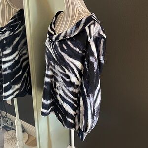 π 1 hour sale. St. John, size 12, Navy & White Patterned Blouse, Gently preloved