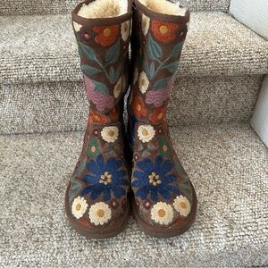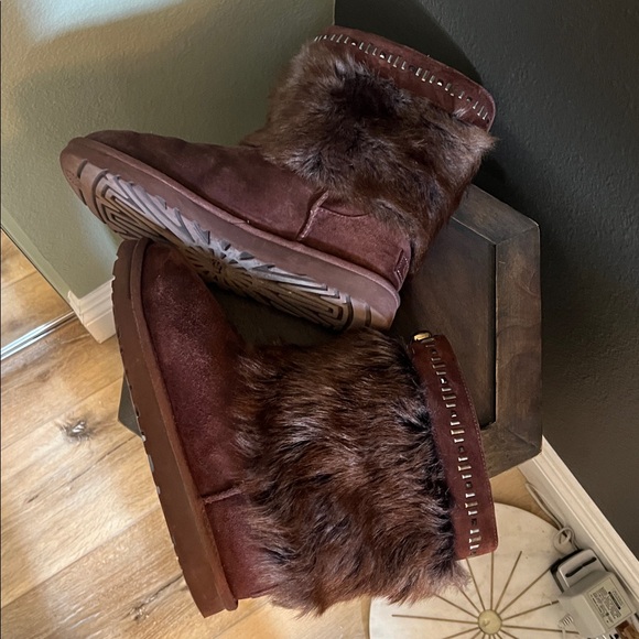 @hopfkimberly I just looked and these are selling higher online! Rare find (UGG Vilet Pinecone Shearling Sheepskin Cuff boot in brown suede, embellished with Swarovski crystals at the topline). Grab em now!!! Sent offer.