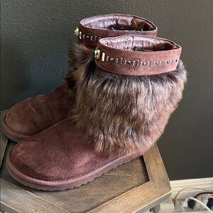 Ugg Vilet Brown Studded Cuff Shearling Boots Women's Size 8.
