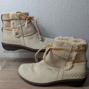 🛑 1 hour sale. Ugg, Vilet Brown Studded Cuff Shearling Boots Women's Size 8.