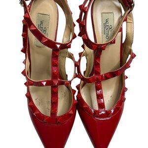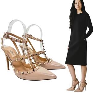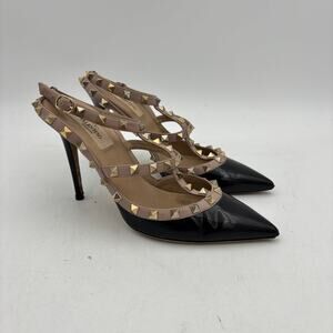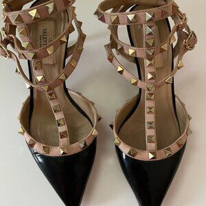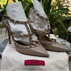 Chic Valentino Garavani heels with intricate tan lace. Features a stylish floral detail. Ideal for elegant occasions. STUNNING!!
