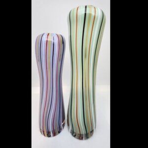1 pair Contemporary Striped Glass Bud Vases, Purple, Green
