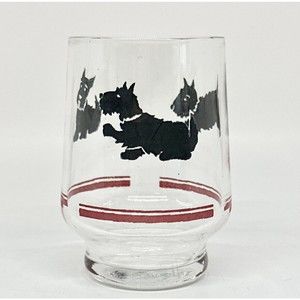1 vintage Scottish Terrier Juice Glass 3in tall replacement glass. Some imperfections due to manufacture & age. See all pictures for condition details.