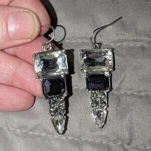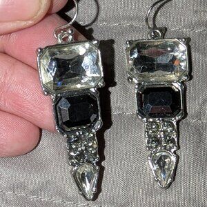 $1 with Bundle ~ Black & Clear Crystal Drop Earrings 4769