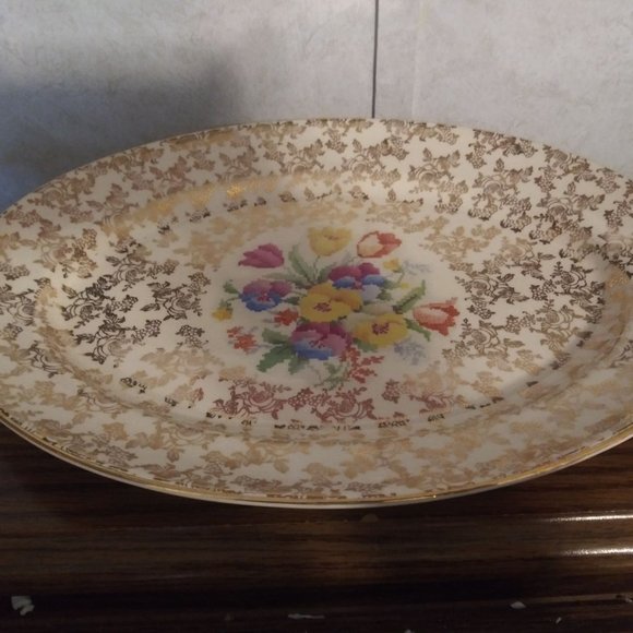 10 1/2" X 14" Oval "Old English Sampler" Serving Platter H&K Tunstall England