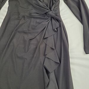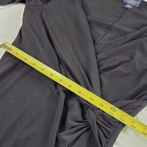 10 AMERICAN LIVING BLACK FAUX WRAP STRETCH MIDI SEXY PLUNGE DRESS Large
