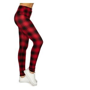 Fall leggings in a soft brushed material in your favorite buffalo plaid in red and black wide plaid pattern.