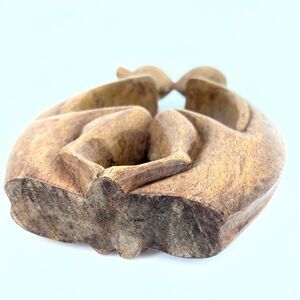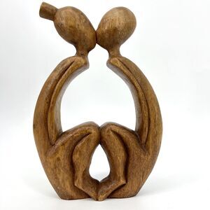 10" Circle of Love Kissing Couple-Hand Carved in Indonesia-Monkey Pod Wood