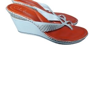 10 Cole Haan white wedge. They are in great condition. Our shoes are preloved and so they may have little ware. Please check out the pictures. no rips stains tares or holes. In a smoke free and pet free home. very comfortable shoes. Same day or next day shipping.**don't hasitate to make an offer***