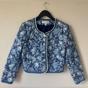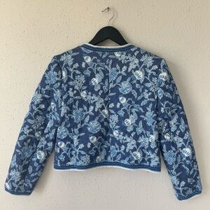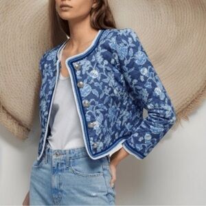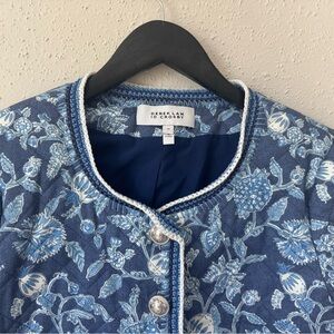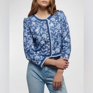 10 Crosby Derek Lam Aster Quilted Jacket 10 Blue Floral Crochet Coastal Prep