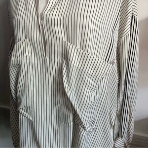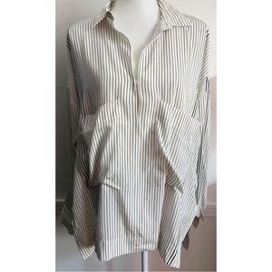 10 Crosby Derek Lam • Ivory Cream Black Striped Oversized Blouse