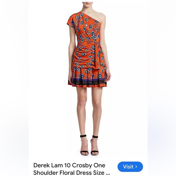 10 Crosby Derek Lam Orange Floral One-Shoulder Dress size 4