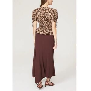10 Crosby Derek Lam Size 8 Puff Sleeve VNeck Rhea Blouse Top Resort Brown Floral