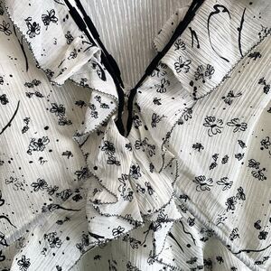 Derek Lam 10 Crosby Vanilla Ivory Silk Floral Ruffle Blouse Size 6 NWT
