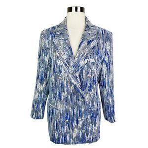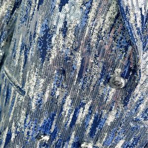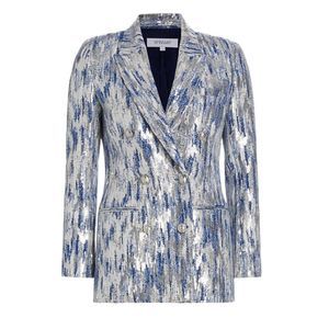 “Derek Lam 10 Crosby's Walter double-breasted tweed blazer is decorated in an array of dazzling sequins. This style features notched lapels, slit pockets , and silver-tone buttons.”