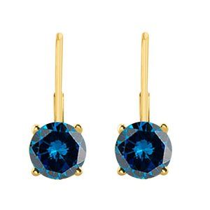 1.0 carat natural blue diamond leverback earring crafted in 14K solid rose, white & yellow Gold, Having Color blue and Clarity is I2-I3. For this earrings metal weight will be 1.70gm.Total 2 diamonds in the earrings and are natural and irradiated. Each diamond on this earring has the touch of master jeweler to set and ensure the diamond earring is perfectly accurate. Earrings will definitely likes your loved once. Diamond earring coming with beautiful gift box.