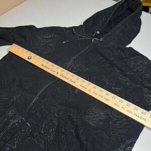 Vintage-inspired 10.Deep full-zip hoodie in black with an allover comic-style graphic print. A bold streetwear piece perfect for casual and urban outfits.