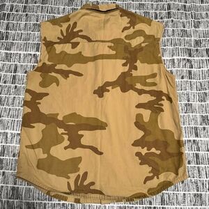 10. Deep brown camo Button down Vest Shirt Men size XL