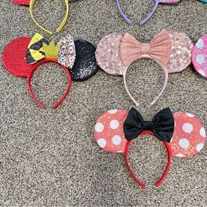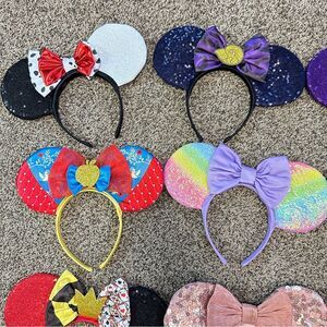10 Disney Minnie Mouse Ears headbands Villains Princesses. 4 Minnie Mouse, 4 Villains, 2 Princesses