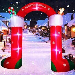 -Perfect Christmas Decor: HOOJO Christmas Socks Archway inflatable decoration has a lovely shape and kid friendly style. It creates a warm and happy atmosphere, making you and your family enjoy the holiday.