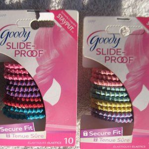 1 package of 10 Goody Ouchless Slide Proof Stay Put Ponytailer Hair Bands.