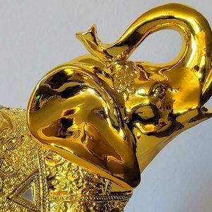 ☑ High Quality Material: This new golden color elephant statue with trunk facing upwards is Made of high-quality golden electroplated polyresin, perfectly sized for a trinket box or tabletop display.