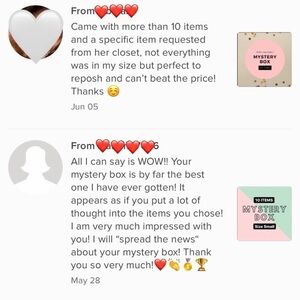 10 items size small (a couple of mediums that fit like a small) all similar to styles i have listed. Read reviews on previous boxes.