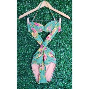 The happy medium between a one-piece and a bikini, this style features cool cutouts, a strapless neckline, and crisscross details across the middle. Put a twist on your typical swim style. This piece was crafted with nylon made from recycled materials that could otherwise go to landfills. Write me with any questions!