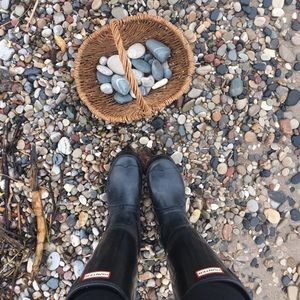 10 Lake Michigan striped wishing stones. Packaged in a linen bag. I find & collect beach glass, coral, fossils, & wishing stones from Lake Michigan so I have a huge collection! Wishing stones are basalt rocks with a white stripe going all the way around the rock. They look so pretty decorated in a bowl! If you’re interested in any fossilized coral, unpolished agates, beach glass, or driftwood please comment below.