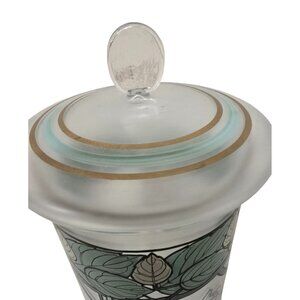 10" Mucha Art Glass Fuchsia Design Satin Glass Canister With Lid