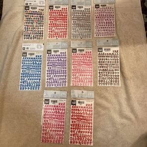 10 packages of stickers! So many different colors! What a great way to decorate a photo, a school project, or just about anything! These stickers come 2 sheets per package! One side has CAPITAL LETTERS, the other side is in LOWER CASE LETTERS. Each side has numbers also! These will definitely get the project done. Have these delivered right to your home! These are BRAND NEW, NEVER OPENED! Please check out the other stickers I have listed and save on shipping.