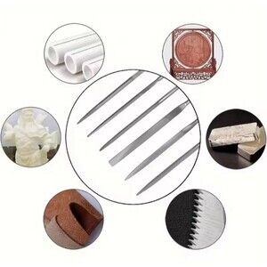 This 10 PCS Premium Needle File Set is a high-quality hand tool set made of high-carbon steel, ensuring durability and precision in your work. The files feature a non-slip ergonomic design, making them comfortable to use for extended periods. Each file is 5.9 inches in length and height, and they come in a sleek silver color. Manufactured in China, this set includes 10 pieces, making it perfect for various home and workshop projects. Each file weighs 4.3 ounces, providing a perfect balance of strength and weight for efficient filing.