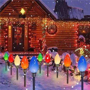 🧿Long-Lasting Performance Christmas Decorations Outdoor: These patio lights feature highly efficient solar panels that allow them to charge throughout the day and provide captivating illumination for 8-10 hours at night. With their multicolored bulb shells and a soft warm glow, these landscape stake lights create a delightful nighttime ambiance, enhancing the beauty of your driveway and pathway!