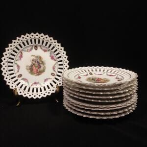10 Pc Antique 1910 German Lattice Edged Porcelain Bread/Tea Plates