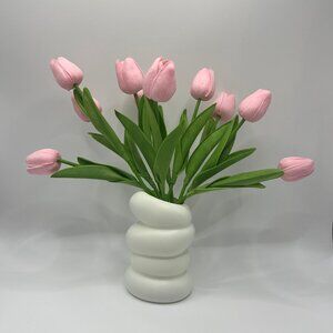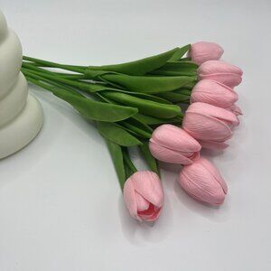 10 Artificial Tulips with Vase, Smooth to the Touch, Silk Flowers, Ideal for Weddings and Office Scenes, Candy Pink