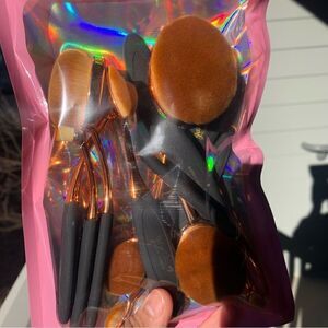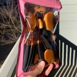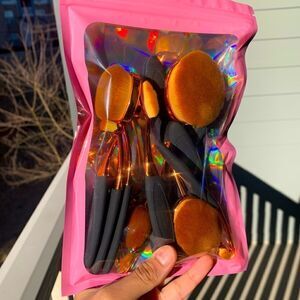 10 Piece Black & Rose Gold Oval Paddle Brush Set