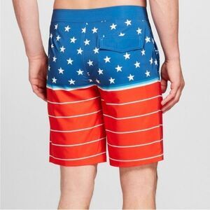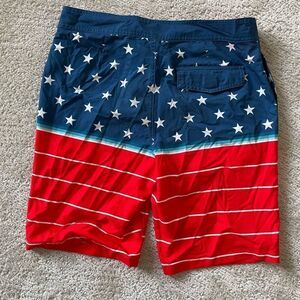 Only been worn a few times, bought at target. Red white and blue board shorts. American flag, patriotic, 4th of July swimming shorts. Like new condition. Stars and Stripes. Swim shorts.