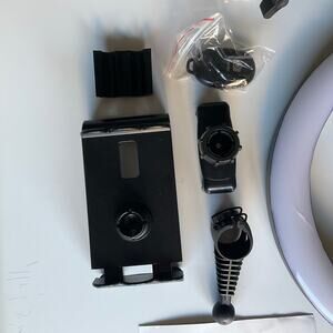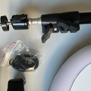 Versatile Accessories: The USB-powered control helps protect your safety while improving the ring light’s brightness. The phone holder is spring-loaded and extends up to 5.3" wide, it is compatible with almost ALL smartphones with or without a case.
