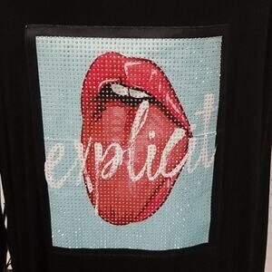 Brand new never worn. Soft Rayon with Studded "EXPLICIT" design and cut out back. Can be worn as a top with leggings or short mini dress.... great as a sleep shirt too