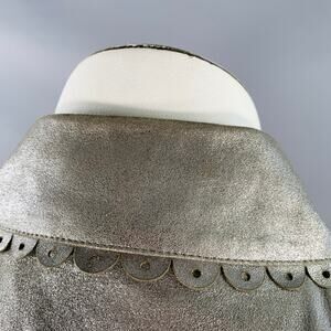 10 Silver Perforated Leather Peter Pan Collar Single Button Jacket Blazer
