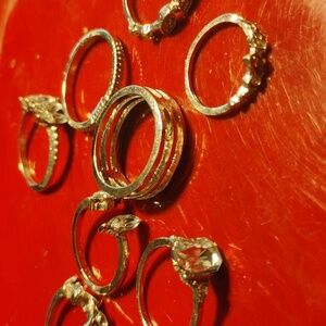 10 sparkly silver rings various sizes 3-8 can be stacked or worn alone