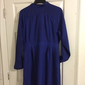 Royal blue dress with necktie and pockets. This dress fall above the knee about 1.5 inches (my height is 5’11 with hips). This dress is appropriate to wear to the office.