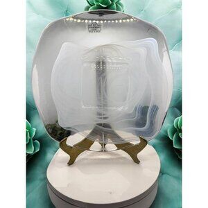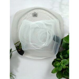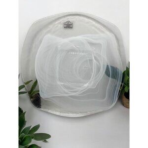 This frosted glass plate features a modern, abstract swirl design. Made in Spain, it adds elegance to a dining or display setting.