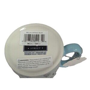10 Strawberry Street Bella Catface Blue Coffee Mug Cat Print 16-oz Gift Tag NEW