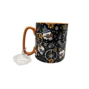 10 Strawberry Street Halloween 18 oz Coffee Soup Mug Skulls Peace Orange NEW